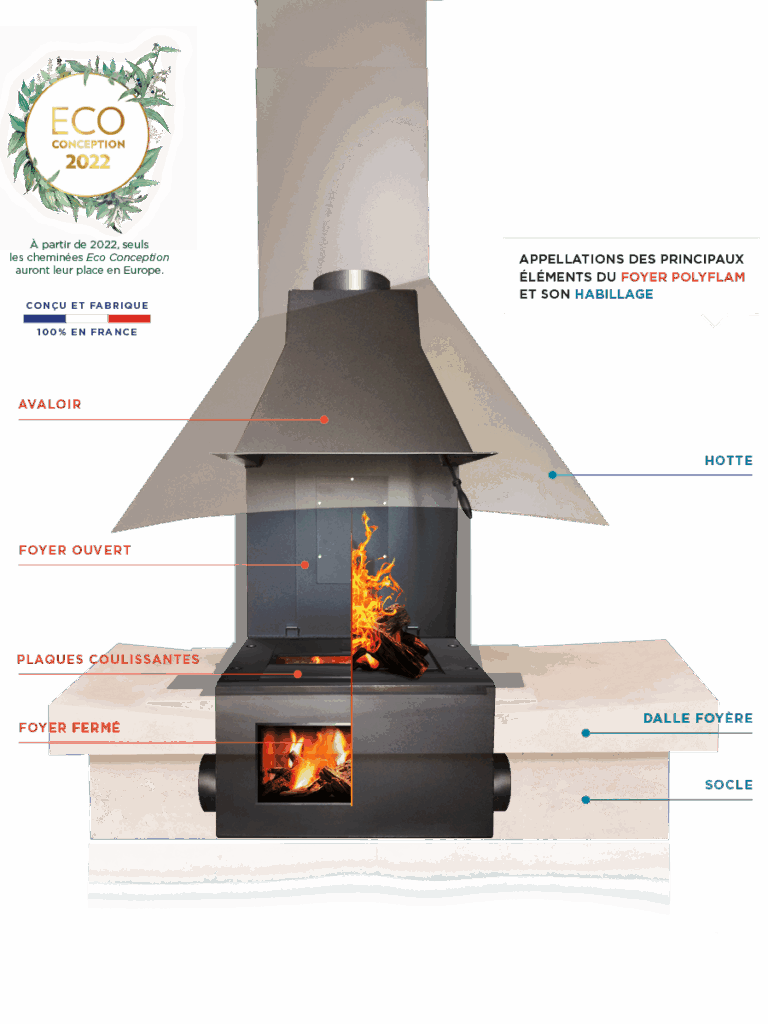 Double usage : feu ouvert pour l’ambiance, feu fermé pour le rendement.